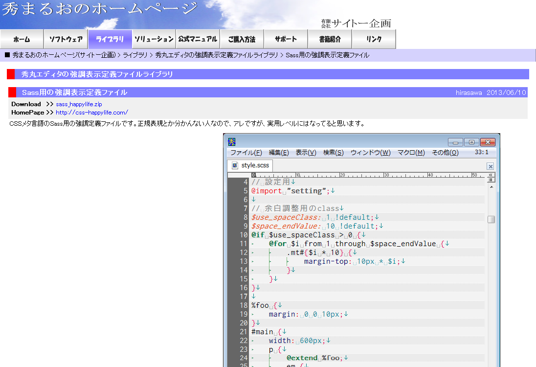 ここでは、Windowsでは非常に人気の有る「秀丸エディタ」でSassを快適に使えるようにするための、設定例を紹介します。