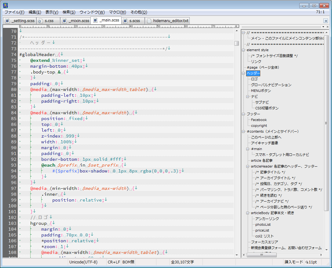 秀丸エディタ(Windows)をSassで使いやすい設定にする