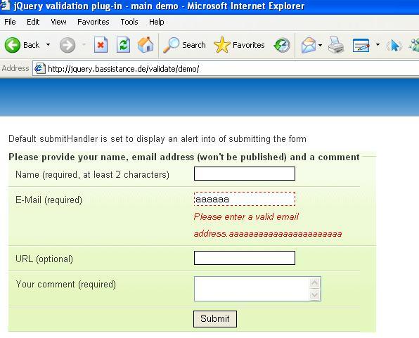 jquery validation error in ie 6