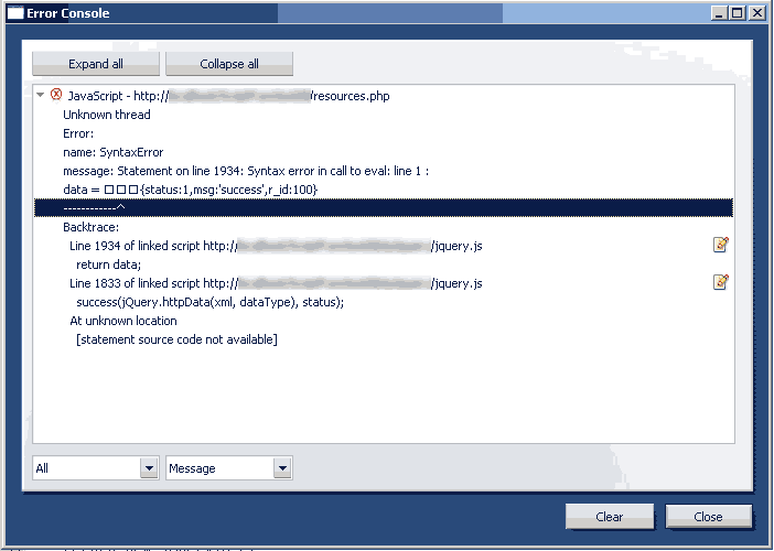 Opera Error Console