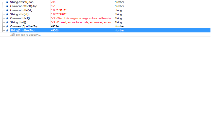 Debuggers watch view of the values monitored, while breaking the getDivScrollTop function