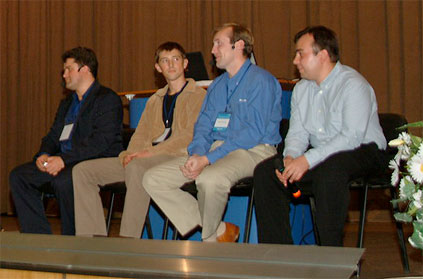 Виктор Шатохин, какой-то непонятный тип, Сергей Байдачный и Алекандр Бойко - отвечали на вопросы зала: