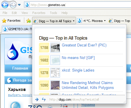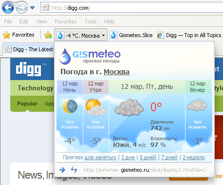 А теперь я на gismeteo, но держу руку на пульсе Digg! Я непредсказуем - согласитесь.