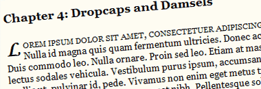 This gives us a small-capped line that is slightly larger than the rest of the surrounding text. Now, all we need to do is create our drop cap: