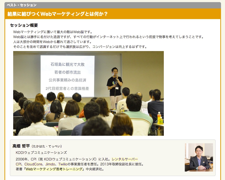 何故SEOやソーシャルメディアが必要なのか、Webサイトに本当に必要なことは何かを改めて考える各セッションでした。