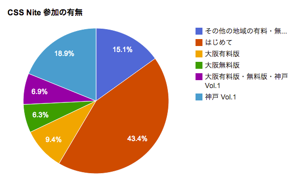 | CSS Niteに 参加の有無 | 初めて | Vol.1 | 他の地域 | 大阪・神戸1 | 大阪有料 | 大阪無料 |