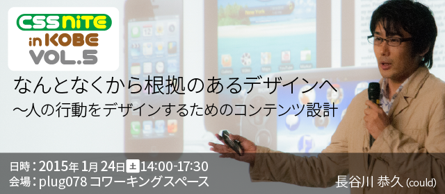 明日1月24日(土)開催のCSS Nite in KOBE, Vol.5「なんとなくから根拠のあるデザインへ 〜 人の行動をデザインするためのコンテンツ設計」