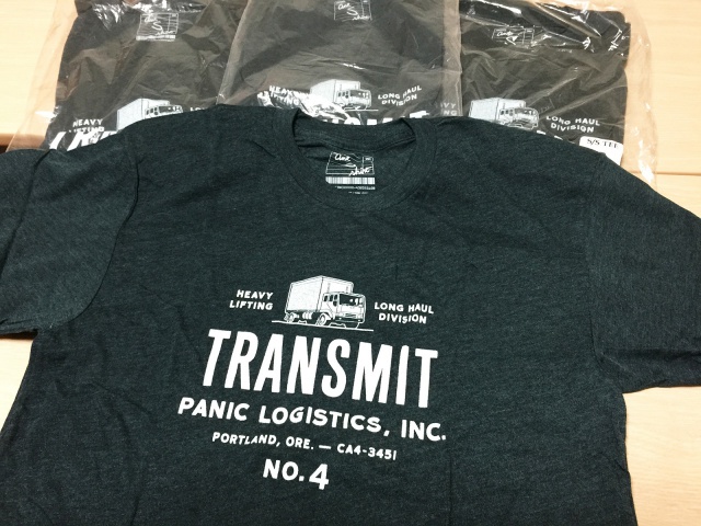 Mac用のコーディングエディタ「Coda」やFTPクライアント「Transmit」でお馴染みの、パニックさまから、TRANSMITのノベルティTシャツをいただきました。