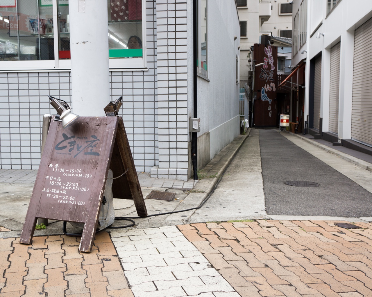 場所は、コンビニの右横の小さな路地を進むと壁に看板が描いているお店です。