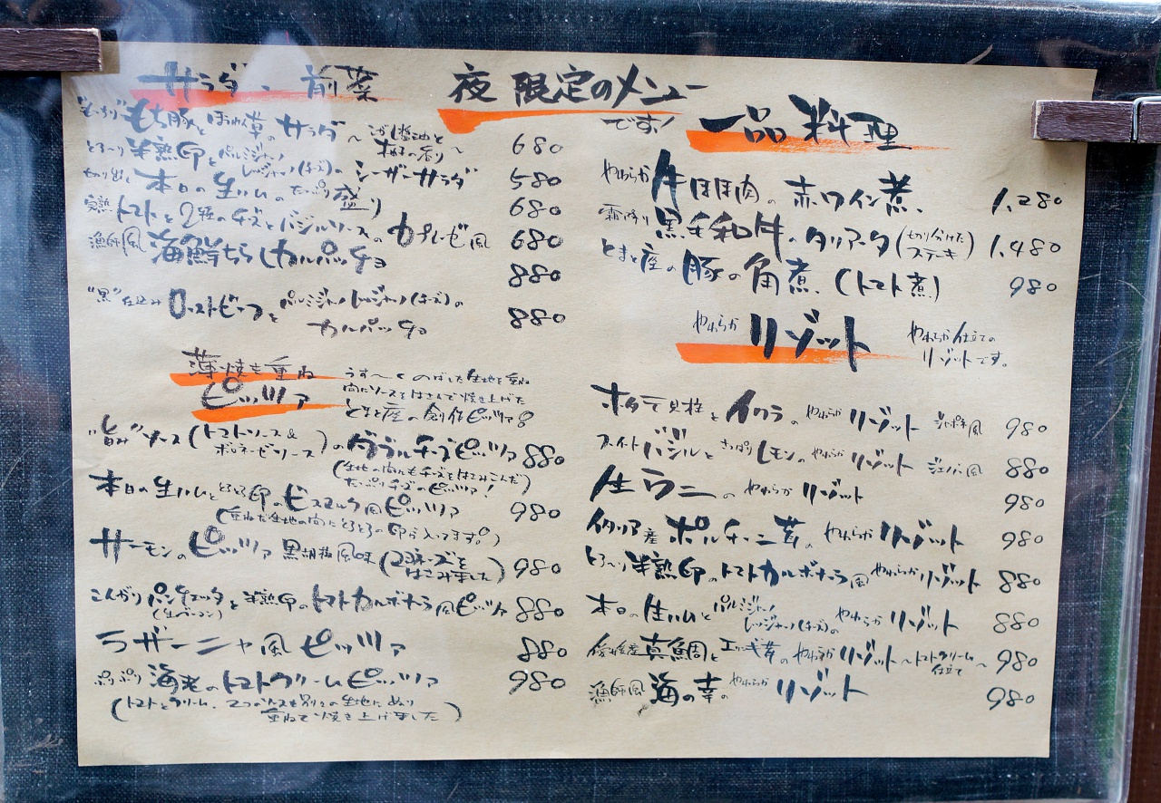 夜はピッツァや生ハム、牛ほほ肉のワイン煮など、イタリアンを満喫できるメニューです。