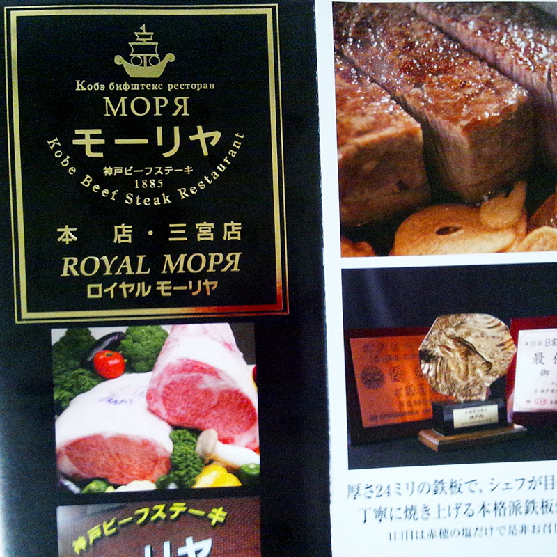 神戸牛を扱って百二十余年!美味しい神戸牛はモーリヤの鉄板焼におまかせ。目前で神戸牛を焼き上げます。ということで、老舗のお店。