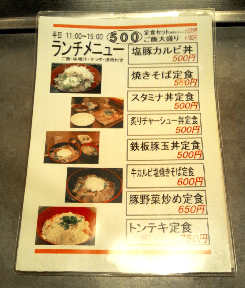 ここ、むちゃくちゃ安いです。黒毛和牛焼肉丼 480円〜とか、ぼっかけ丼 300円とか。コスパ最高じゃないでしょうか。