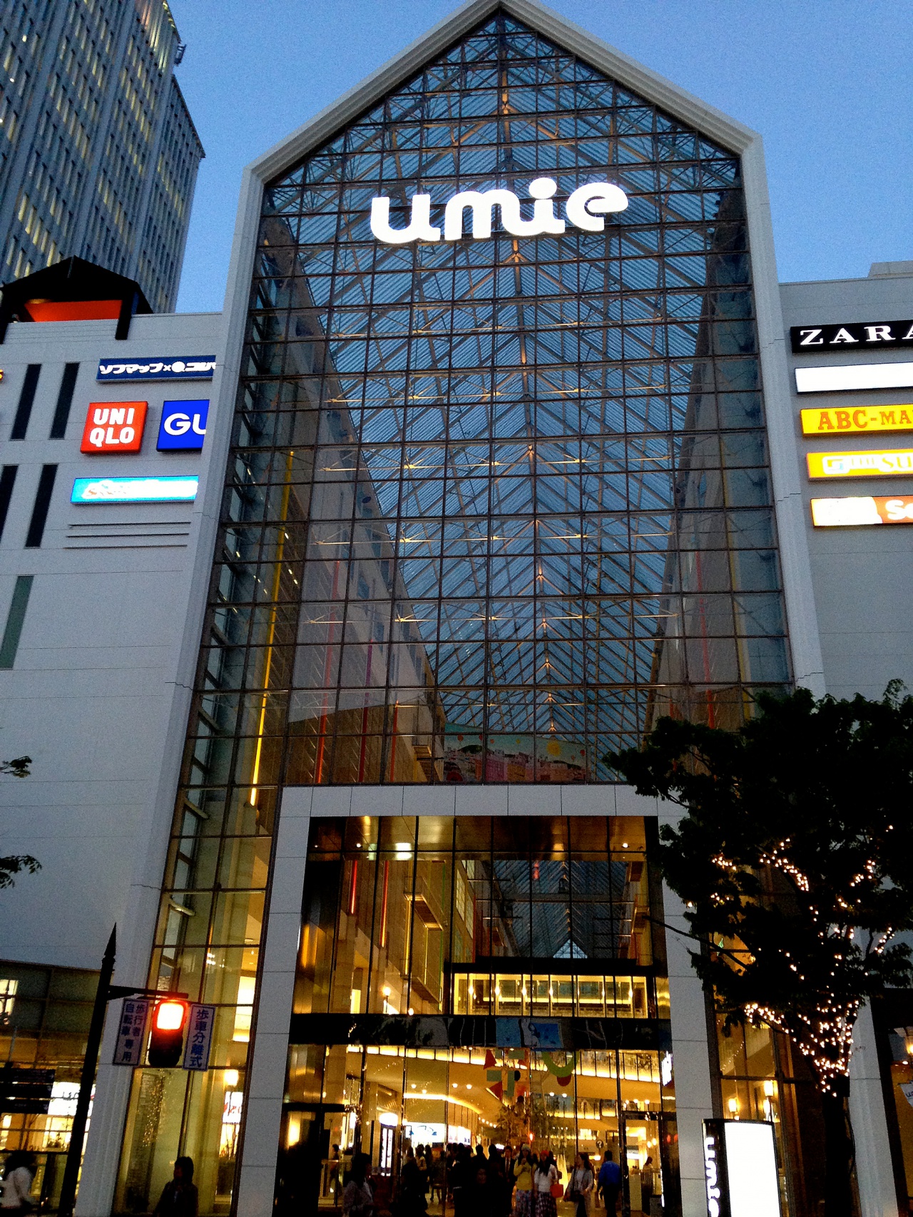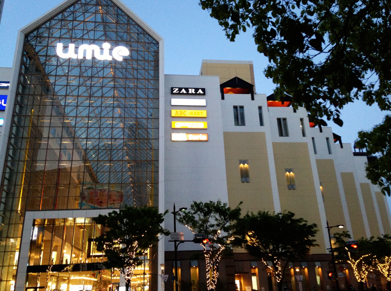 阪急百貨店の跡地に開業したumieは、それぞれ「サウスモール」「ノースモール」という名前にわかれていて「H&M」「OLD NAVY」などのファストファッション・カジュアル衣料ブランドなども集まっています。