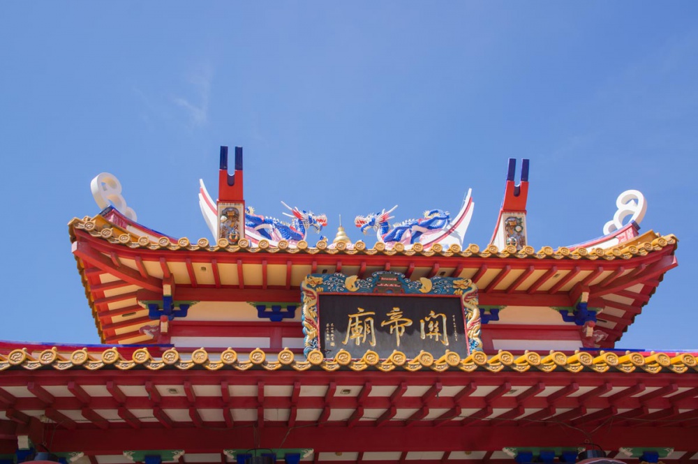 住宅街を歩いていると突然派手な建物が現れます。三国志の武将・関羽を祀っているそうで、財の神・商業の神様だそうです。