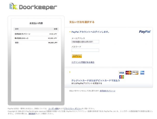 PayPalのアカウントをお持ちの方はログインして決済に進んでください。