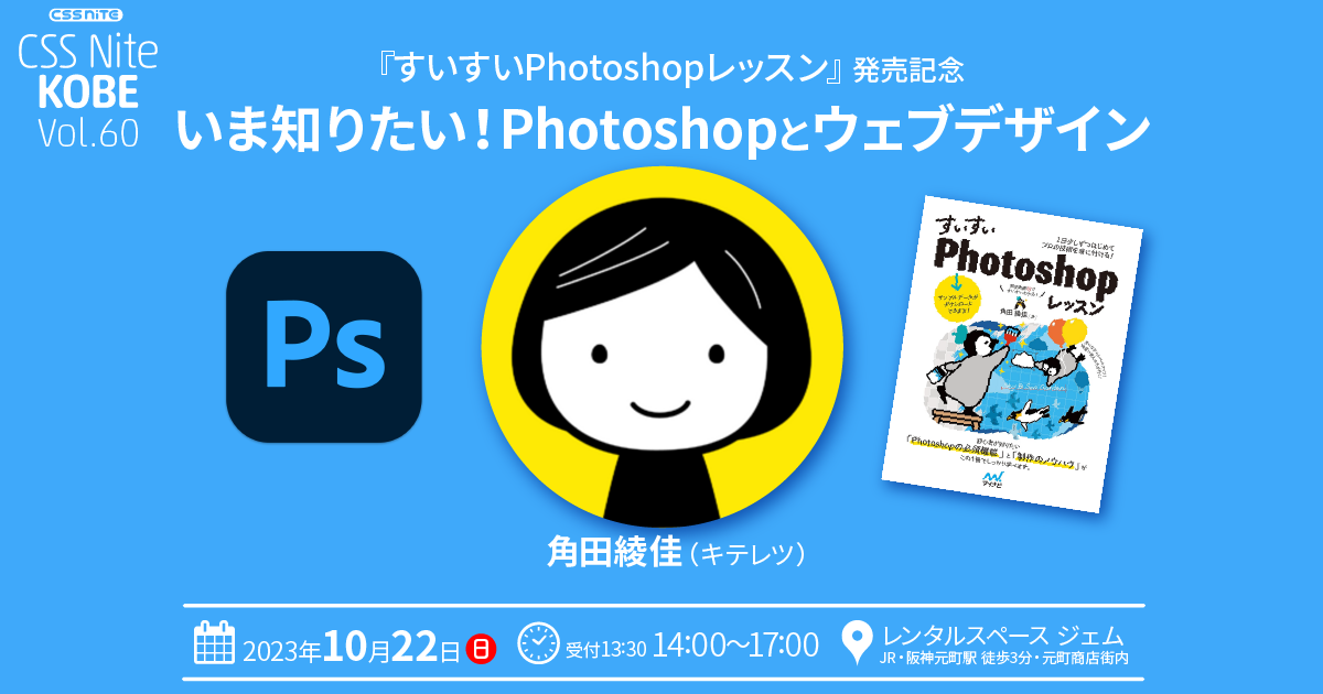 2023年4月に発売された 『すいすいPhotoshopレッスン 〜1日少しずつはじめてプロの技術を身に付ける!〜』 の著者 角田綾佳さん(@spicagraph)に、進化が著しい Photoshop のウェブ制作での効率的な使い方を学びます。