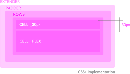 - defines flexible elements like ROWS, COLS, CELL and their alignments