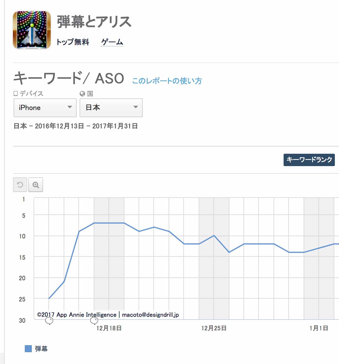 ストアに初めて掲載された段階(DL数や継続率は0)では検索ランキングは何位くらいからスタートするのでしょうか?。私がリリースしてきた弾幕ゲームは「弾幕」で検索したときに約20位くらいからのスタートになることが多いです。そしてプレイヤーの評価(DL数、継続率、評価やコメント)によってランキングが上下していくわけです。
