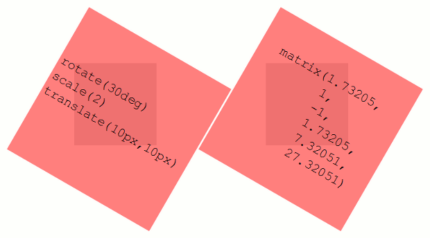 rotate(30deg) scale(2) translate(10px, 10px)といった指定があったとしましょう。