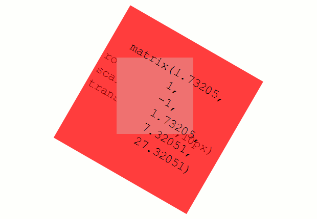 matrix()でまとめて指定するとmatrix(1.73205, 1, -1, 1.73205, 7.32051, 27.32051)となります。