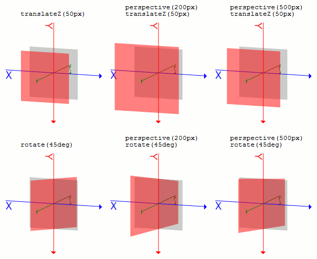 また、transformにperspective()関数で指定する場合には、回転の前に書かなければなりません。