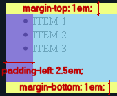 Por defecto, la etiqueta UL tiene las siguientes propiedades CSS: