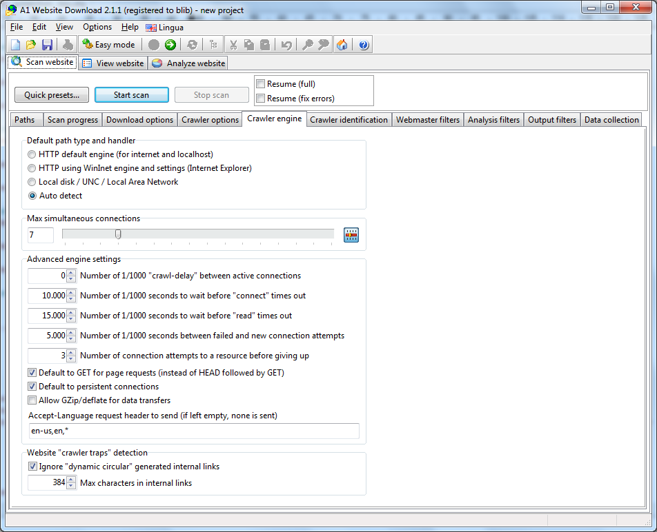 A1 Website Download 2.1.1 in Windows 7 - download scanner speed options