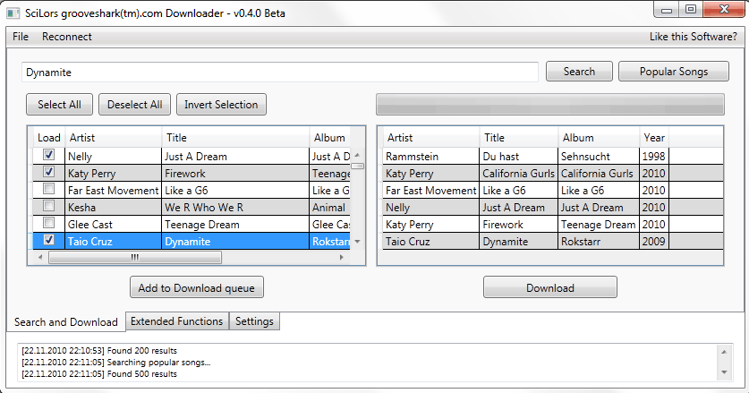 Thanks fly out to "nilezon" who offered his grooveshark™ API!