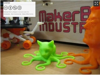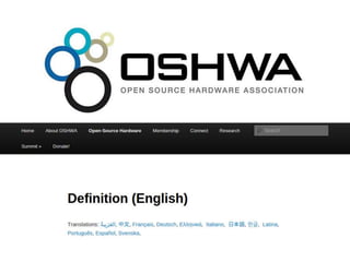 The document discusses the intersection of digital fabrication, open source hardware, and Creative Commons as presented by Michael Weinberg at the 2015 Creative Commons Summit. It mentions influential figures and organizations in the field, suggesting a collaborative and innovative approach to hardware design and fabrication. The content emphasizes the importance of open access and community contributions in advancing technology.