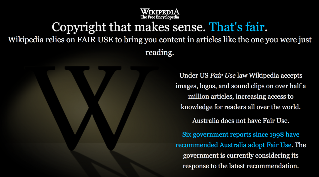 This week Wikipedia is urging users in Australia to tell their government representatives to champion fair use. The campaign, organised alongside Electronic Frontiers Australia and the Australian Digital Alliance, advocates for policy makers to update copyright law to include fair use, thus providing a progressive legal framework to support creators and remixers, educational activities, and…