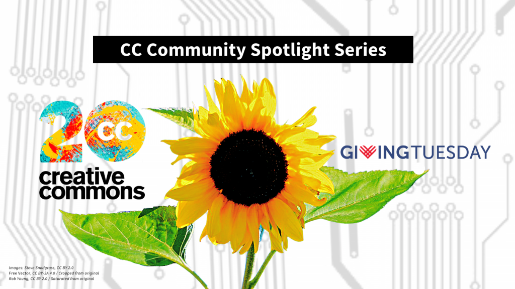 This #GivingTuesday — Tuesday, November 30th, Creative Commons invites you to join our 20th Anniversary celebration. In the weeks leading up to #GivingTuesday, we’ll be spotlighting leaders in the Open Movement and encouraging you to support our Better Sharing, Brighter Future campaign. We’ve set a goal to raise $100,000 before the end of this year. The great news is that every…