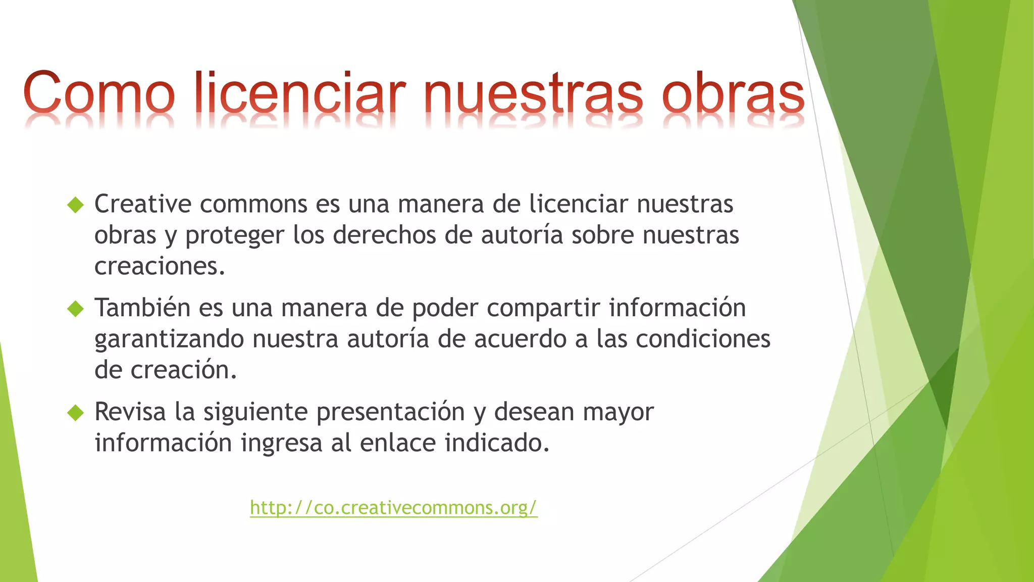 Creative Commons es un proyecto internacional que permite a creadores definir los términos en los que sus obras pueden ser usadas, incluyendo qué derechos desean entregar y en qué condiciones. Ofrece una serie de licencias que facilitan la distribución y uso de contenidos dentro del dominio público. Colombia se unió a Creative Commons en 2006 y desde entonces ha promovido el uso de estas licencias.