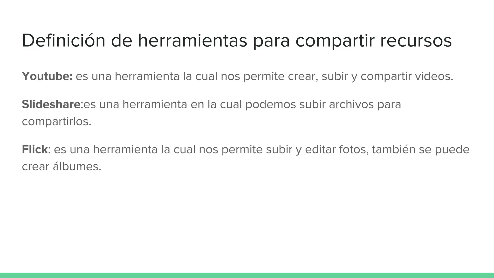 El documento define las licencias Creative Commons, que permiten compartir contenido con ciertas condiciones. También describe herramientas como YouTube, Slideshare y Flick que permiten compartir videos, presentaciones y fotos. Finalmente, define la ofimática web como un conjunto de técnicas y aplicaciones para obtener información de forma más rápida aunque requiera aprender las técnicas.