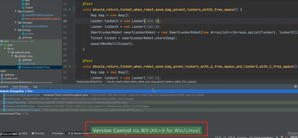 举个例子。我直接点击tab栏下的菜单打开 Version Control(版本控制) 的话,这个插件就会提示你可以用快捷键 command+9或者shift+command+9打开。如下图所示。