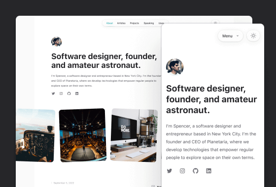 Visually-stunning, easy to customize templates built with React and Next.js. The ultimate resource for learning how experts build websites with Tailwind CSS.