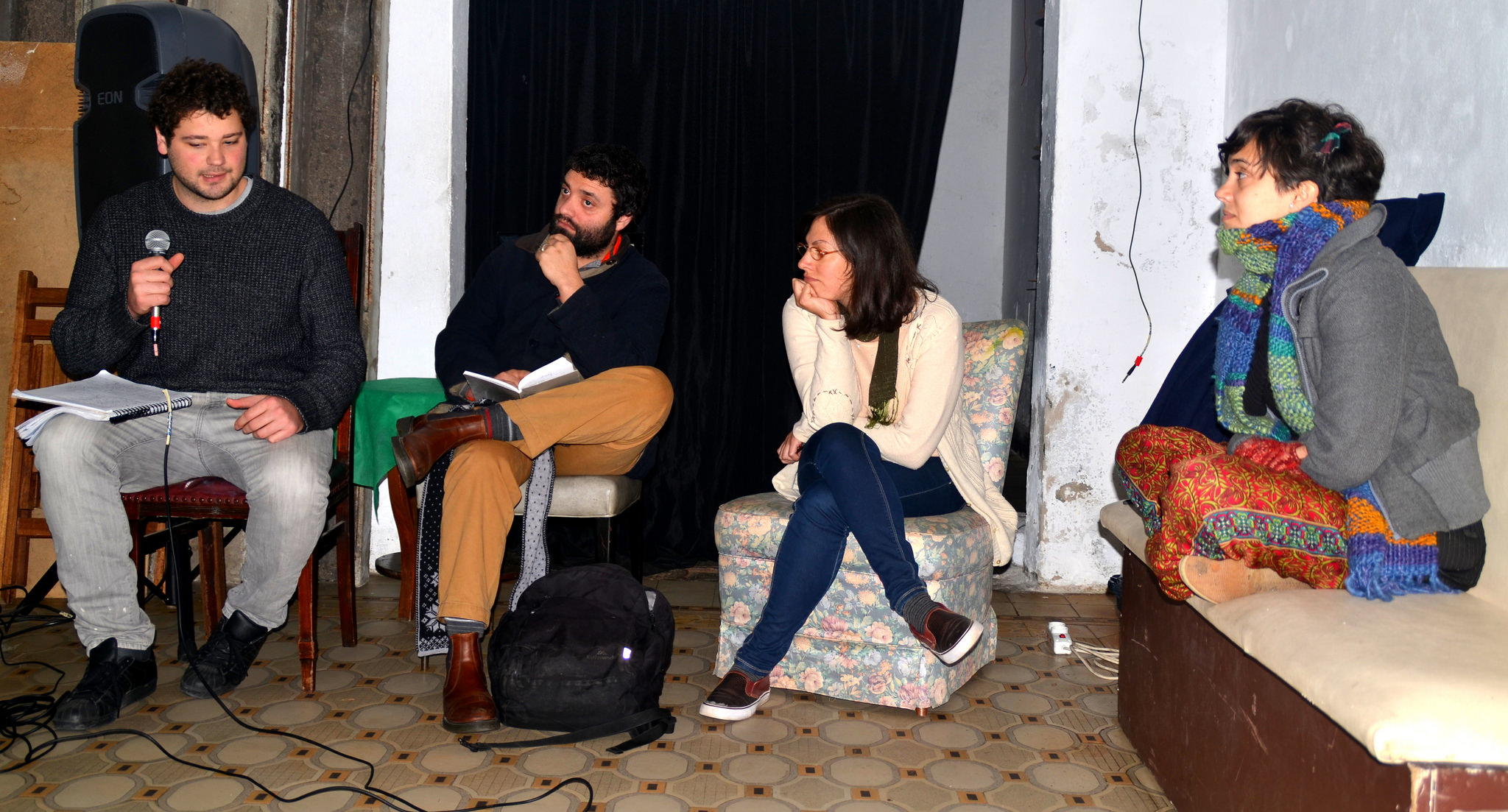 La reunión, organizada por Proderechos y Creative Commons Uruguay y realizada en Casa Tomada, fue moderada por Victoria Carranza, integrante de Proderechos, y contó con las participaciones de Gabriel Delacoste (politólogo), Mariana Fossatti (socióloga, integrante de Creative Commons Uruguay) y Fabrizio Scrollini (abogado, integrante de DATA Uruguay).
