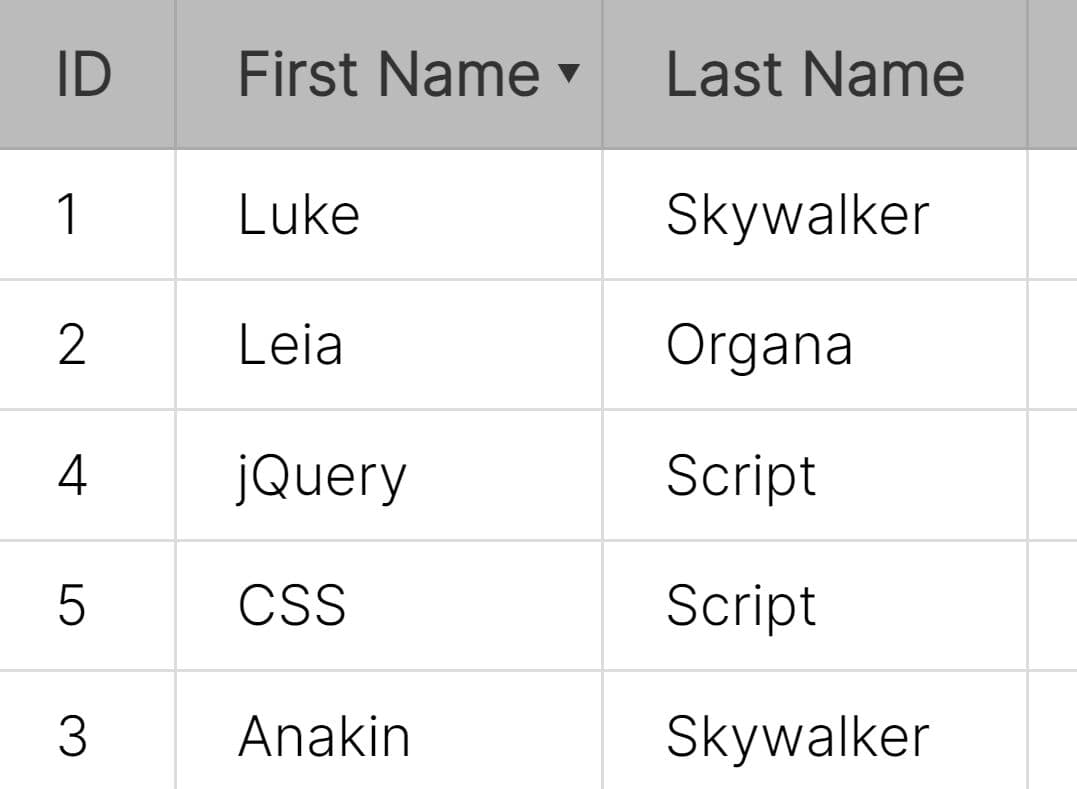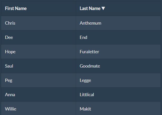 - Sorter.js: Sorts rows of your tables by strings and/or numeric values.