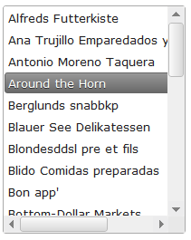Create your ListBox and load the data. We define a source object for the ListBox and bind that source to the data.php which returns the JSON data. We are also defining the ListBox's displayMember and valueMember properties. The displayMember specifies the name of an object property to display. The valueMember specifies the name of an object property to set as a 'value' of the list items.