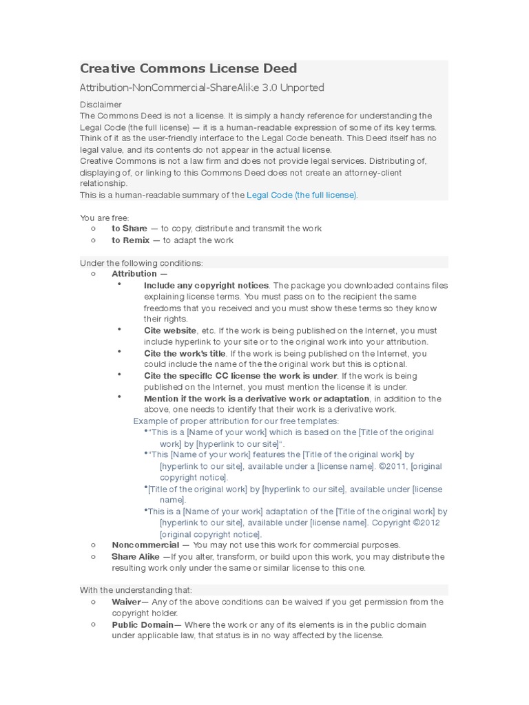 The Commons Deed is not a license. It is simply a handy reference for understanding the