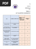 TABLE OF SPECIFICATIONS FOR 1ST QUARTER ASSESSMENT