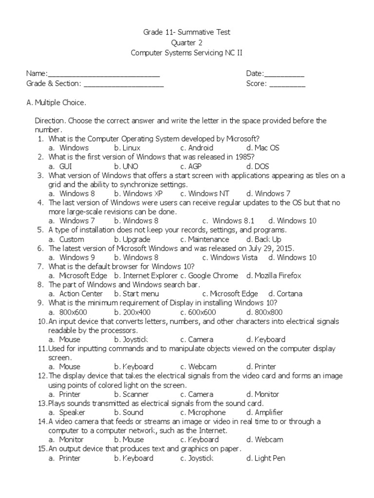 a. Mouse b. Keyboard c. Webcam d. Printer