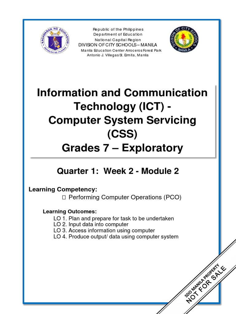Information and Communication Technology (ICT) - Computer System Servicing (CSS) Grades 7 - Exploratory