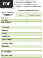 entrepreneur. Put a checkmark in the second column that indicates your strong PECs. The