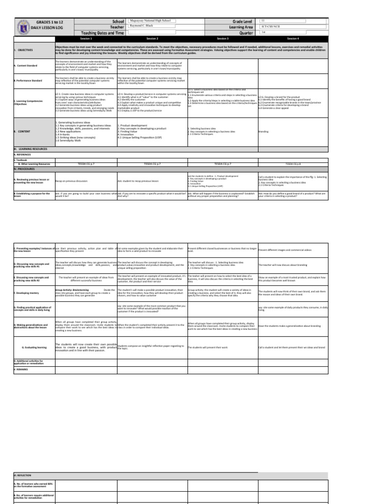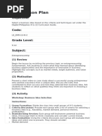 The teacher will discuss how they can generate business The teacher will discuss the concept in developing The teacher will discuss : 1. Selecting business idea