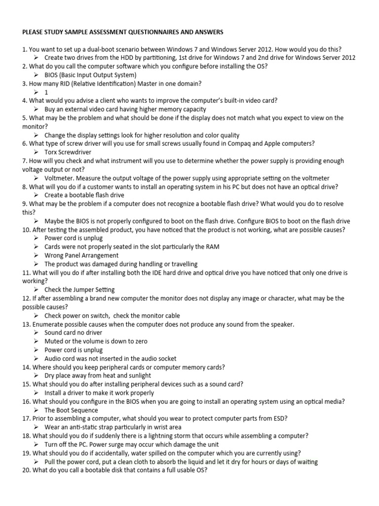PLEASE STUDY SAMPLE ASSESSMENT QUESTIONNAIRES AND ANSWERS