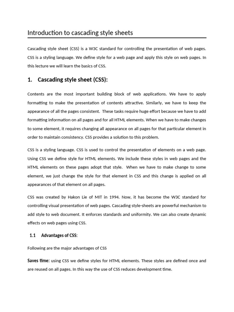 Introduction to cascading style sheets