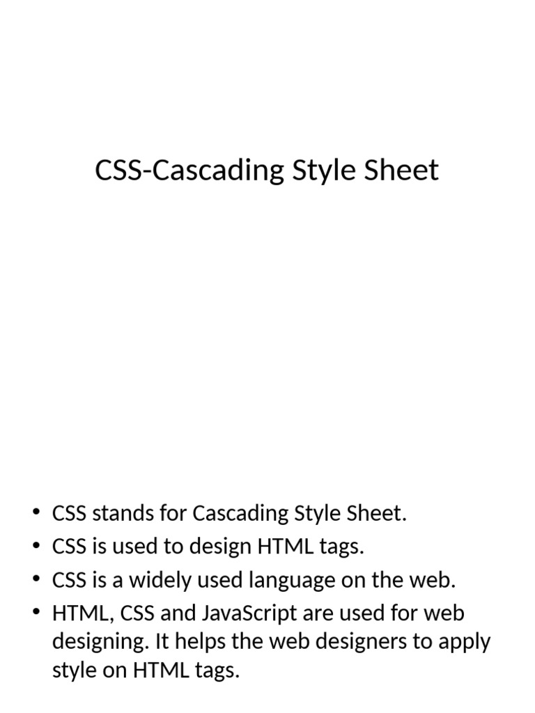• CSS stands for Cascading Style Sheet.
