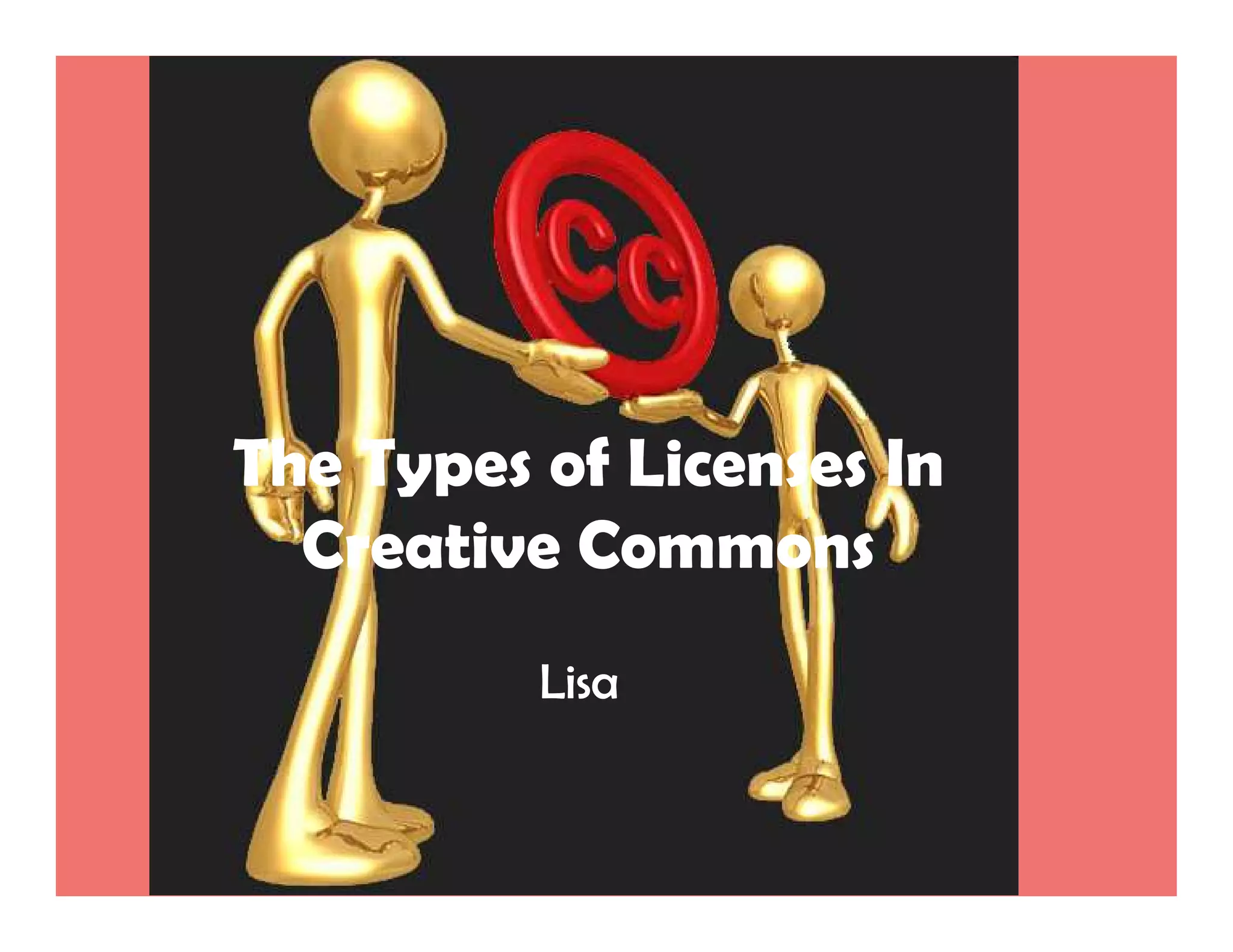 The document summarizes the different types of Creative Commons licenses. There are several licenses that allow for attribution, commercial use, derivatives or modifications with different combinations of allowed and restricted uses. The licenses range from most restrictive like Attribution-NonCommercial-NoDerivs to least restrictive like Attribution which allows commercial use, modifications and sharing with attribution.